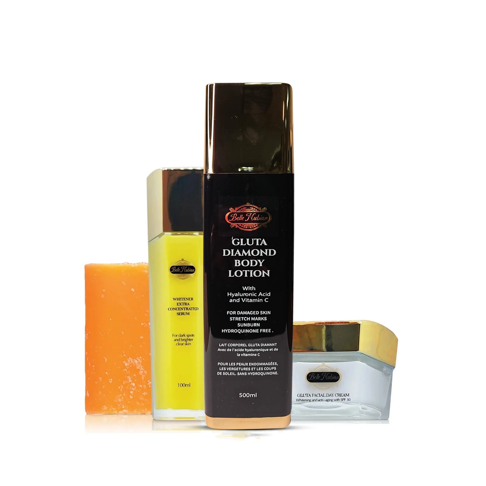 This set is for our brown skin and deep toned Belles looking to remain within their same complexion/skin tone range but wanting to add some shine and radiance to their skin, for a more creamy and smooth chocolate complexion that enhances your natural undertones and rich skin. This set helps with brightening (not lightening), evening out and clearing your complexion.